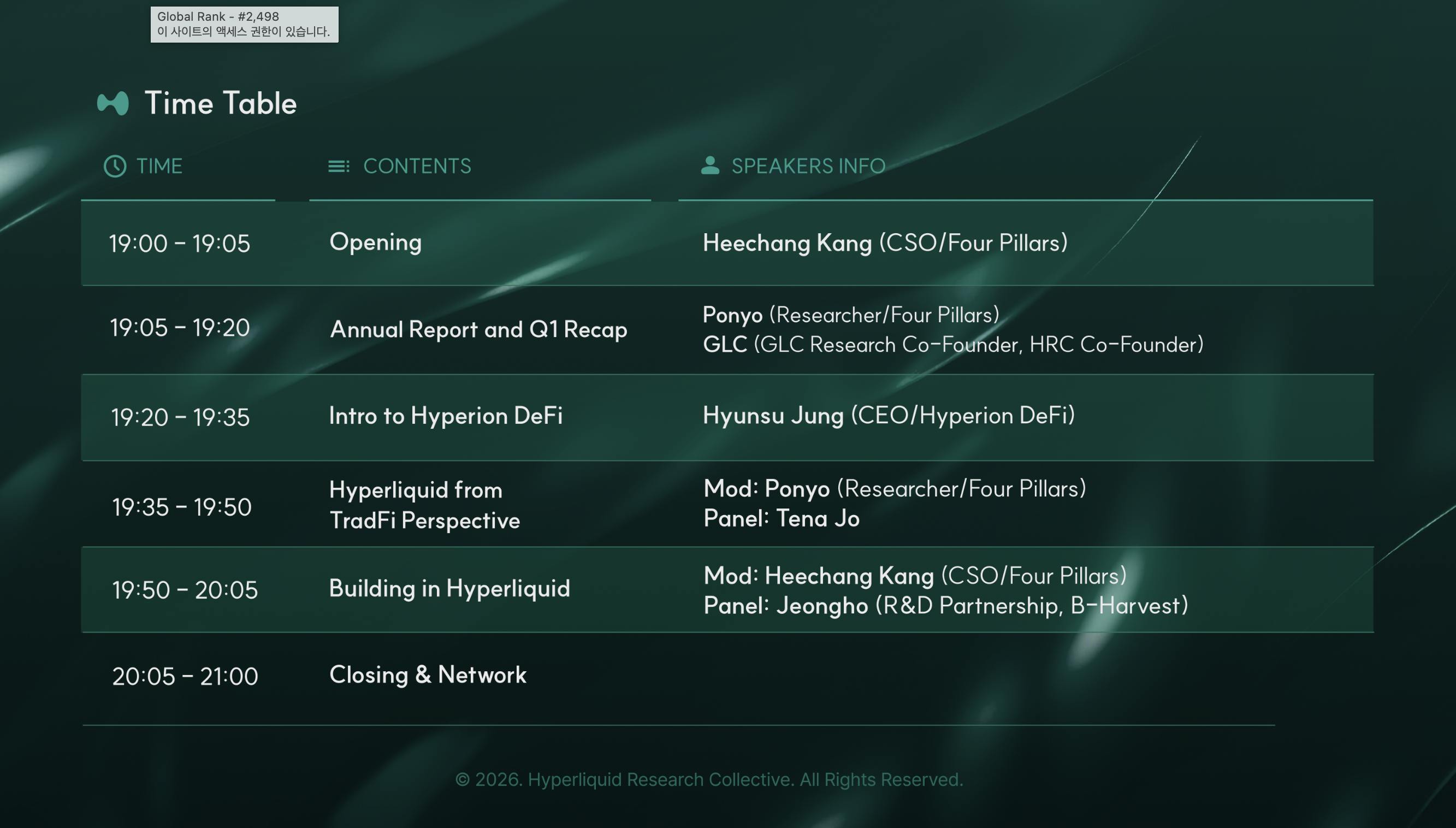 - 19:35 ~ 19:50|Hyperliquid from TradFi Perspective
