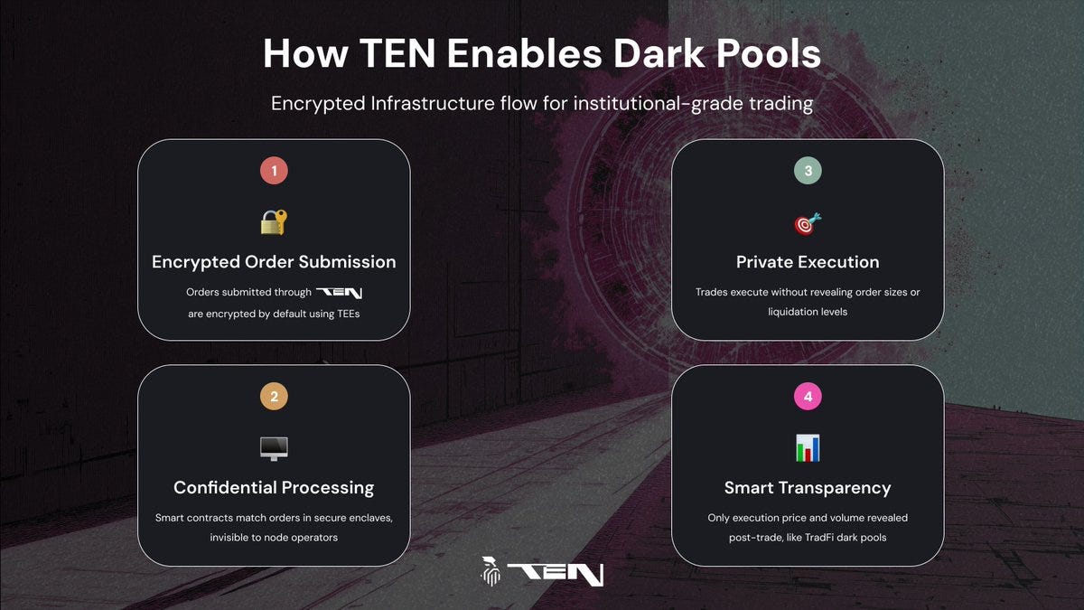 다른 체인들이 DeFi의 남은 파이를 놓고 경쟁할 때, TEN은 이전에는 존재할 수 없었던 수조 달러 규모의 신규 시장 전체를 가져온다.