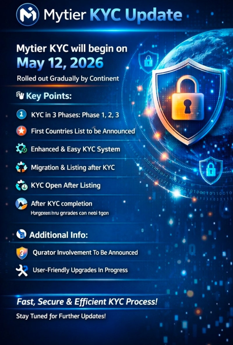 Mytier의 KYC 인증 프로세스는 2026년 5월 12일부터 순차적으로 시작될 예정입니다.