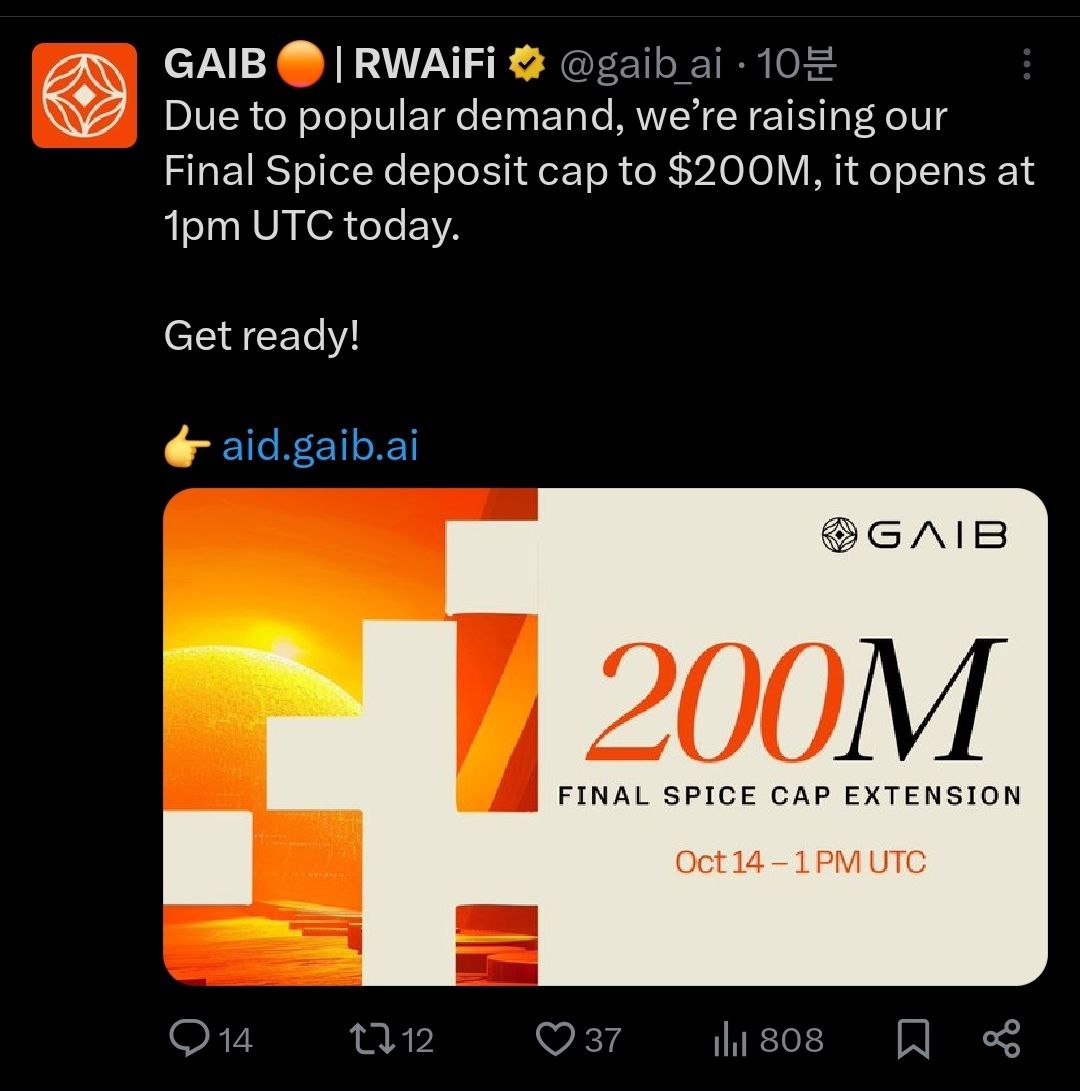속보 GAIB 예치캡 $200M 까지 상향, 약 $50M가량 증가
