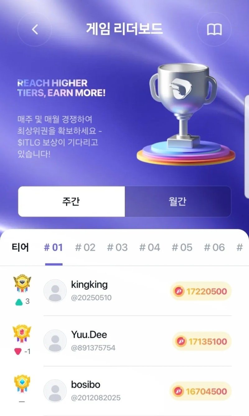 1티어~6티어 랭킹 시스템을 통해 단계별 보상 지급
