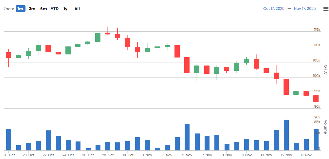 코이니지에 따르면 코인베이스 프라임의 비트코인 거래량은 11월 16일 기준 약 7228BTC로 집계됐다. 이는 전일(11월 15일) 기록한 6634BTC 대비 약 9.0% 증가한 수치로, 거래 활동이 소폭 확대된 모습이다. 달러 기준 24시간 거래량은 사이트 표시 기준 약 4억3380만 달러 수준으로 나타났다.