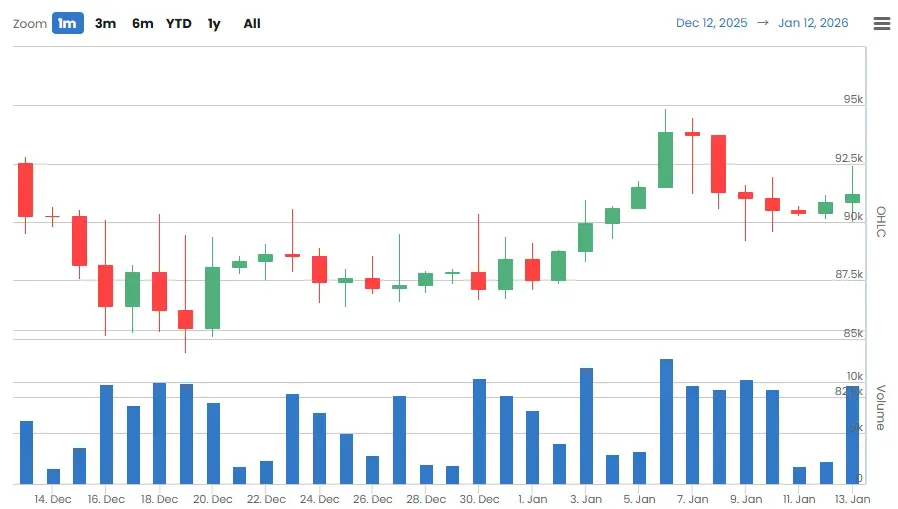 앞서 1월 9일 –1268.32BTC 대규모 순출금 이후 10일부터 +87.51BTC, 11일 +200.89BTC, 12일 +116.50BTC까지 순입금이 이어졌다. 다만 13일 들어 유입 강도는 눈에 띄게 약화된 모습으로, 단기 매도 압력은 제한적인 모습이다.