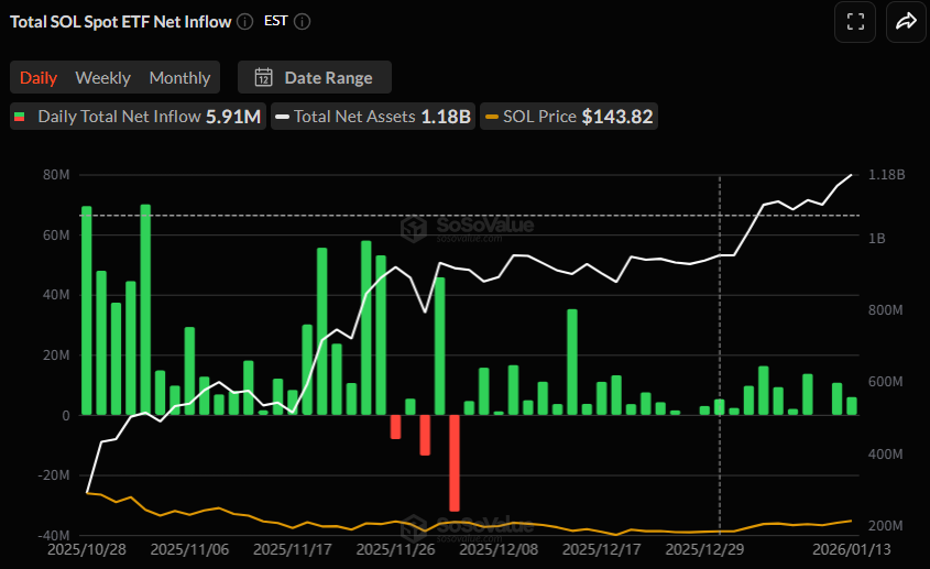 소소밸류 집계에 따르면 1월 13일(현지시간) 기준 미국 XRP 현물 ETF 시장에서는 총 1298만 달러의 일간 순유입이 발생했다.