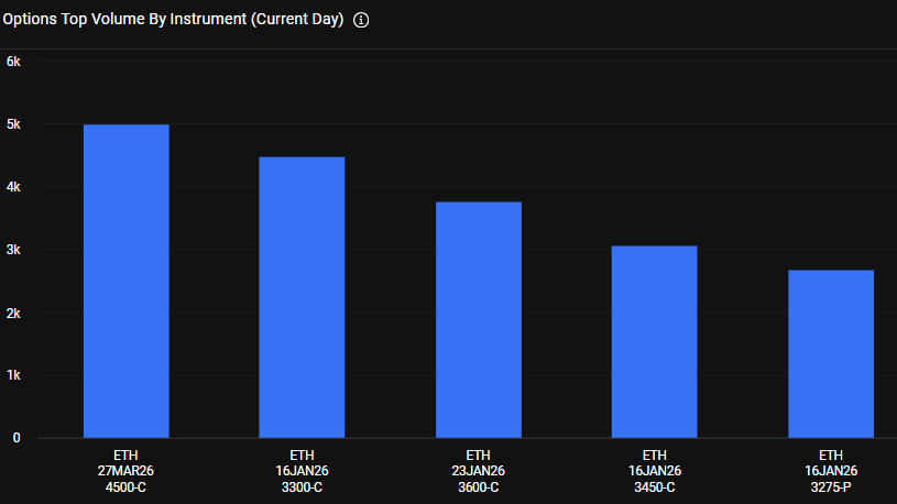 이더리움 4500달러 콜옵션(3월 27일)|3300달러 콜옵션(1월 16일)|3600달러 콜옵션(1월 23일)|3450달러 콜옵션(1월 16일)|3275달러 풋옵션(1월 16일)