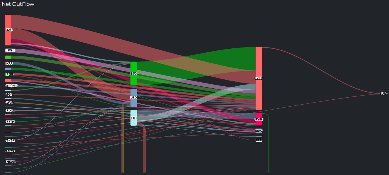 법정화폐 ▲달러(USD) 444만 달러 ▲원화(KRW) 116만 달러 등으로 일부 현금화 흐름이 나타났다.
