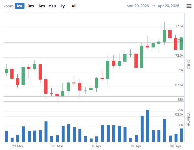 앞서 4월 17일(+5018BTC), 18일(+631BTC), 19일(+465BTC), 20일(-5005BTC)에 이어 4월 21일(+40BTC, 미완결)로 나타나며 변동성 높은 수급 흐름이 확인된다. 최근에는 큰 폭의 유입과 유출이 반복되는 등 기관 수급의 방향성이 불안정한 흐름을 이어가고 있다.