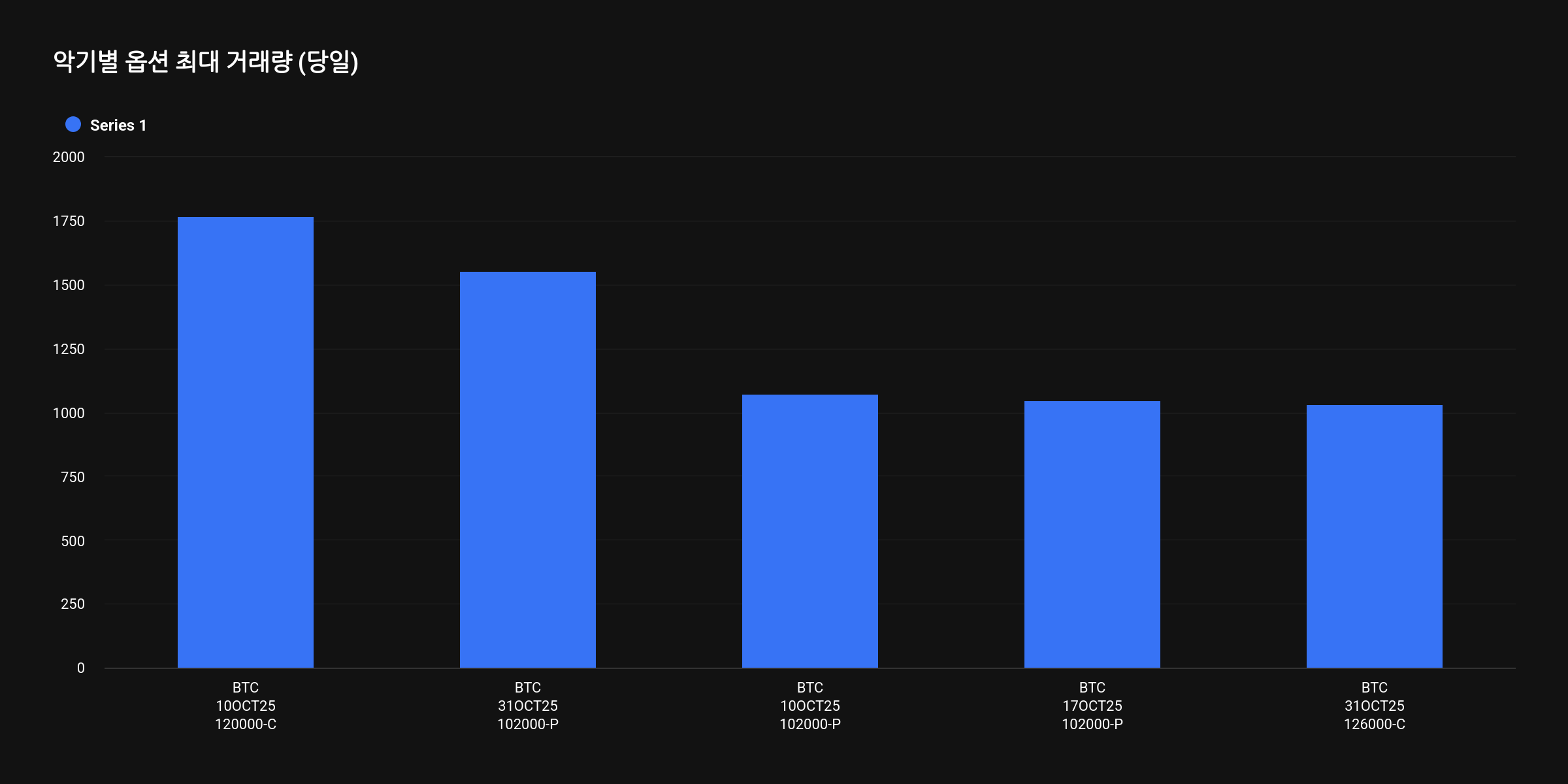 최근 24시간 동안 거래된 옵션 계약을 보면 콜옵션 거래량이 2만1670건, 풋옵션 거래량이 1만9862건으로, 콜옵션 거래가 다소 우위를 보였다. 24시간 거래량 기준 풋/콜 비율은 0.92이다.