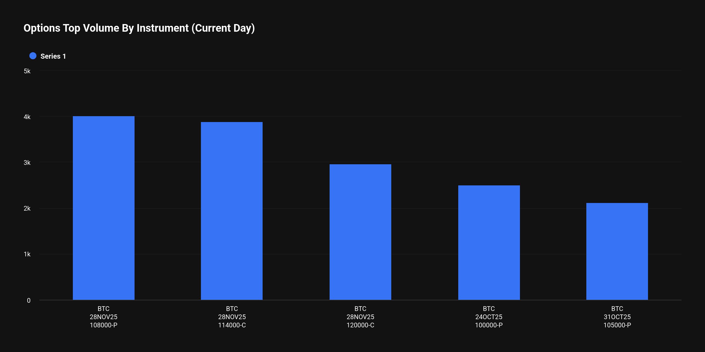 현재 옵션 시장에서는 풋옵션 거래가 상위를 대부분 차지하며 단기 하방 리스크에 대한 방어 심리가 두드러지고 있다. 특히 10만~10만8000달러 구간에 풋옵션 거래가 집중되며 투자자들이 단기 조정 가능성에 대비하고 있는 모습이다. 반면 11만4000달러와 12만 달러 구간의 콜옵션 거래도 활발해 일부 투자자들이 중기적 반등 가능성에도 베팅하고 있음을 시사한다.