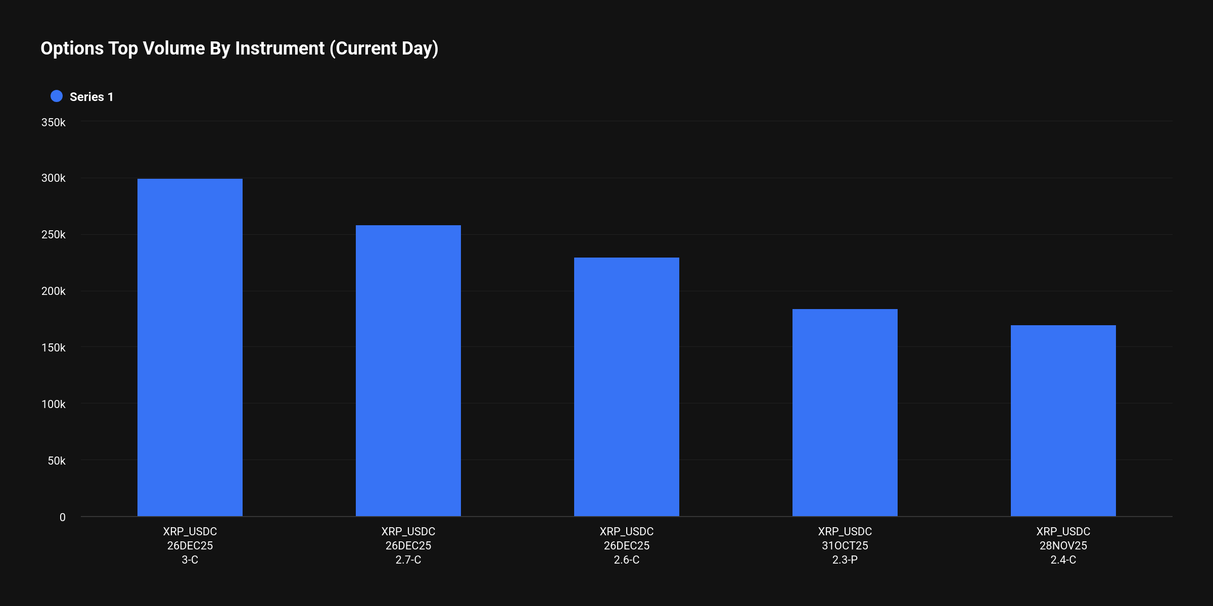 XRP는 2.6~3달러 구간에서 콜옵션 거래가 집중되며 중기 상승 기대가 두드러졌고 시장 전반에 낙관적 심리가 형성된 모습이다.