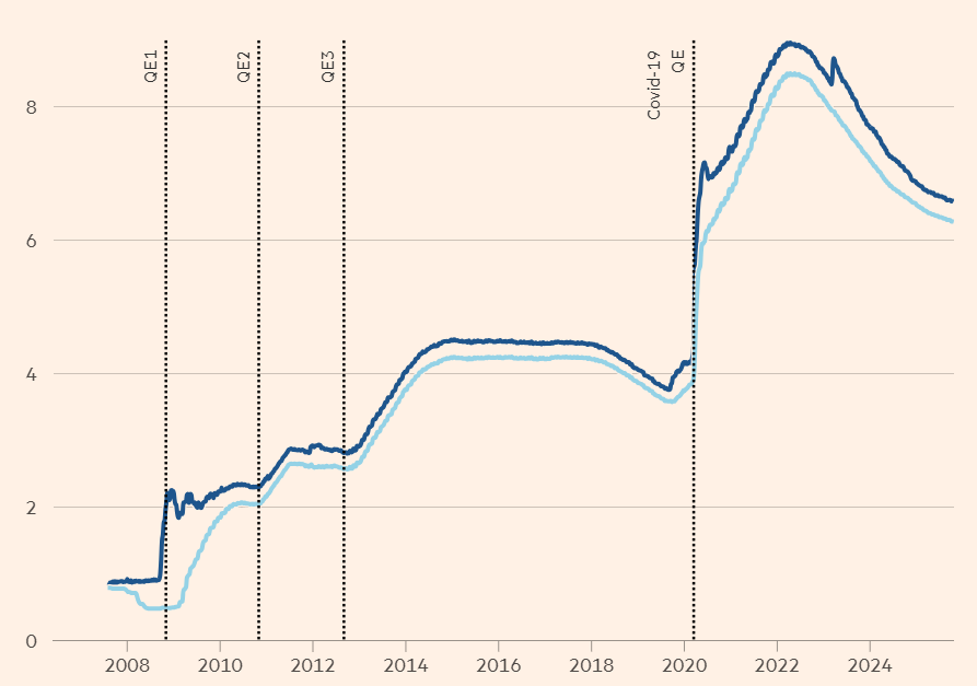 연준 통계에 따르면 은행들이 중앙은행에 예치한 준비금은 최근 2조9300억달러 수준으로 떨어졌다. 2023년 이후 가장 낮은 수치다. 시장 분석가들은 “이 추세가 이어지면 앞으로 몇 주 내 준비금이 ‘위험선’에 진입할 것”이라고 경고했다. 연준이 인플레이션 억제를 위해 시행 중인 양적 긴축(QT) 정책이 금융권의 현금 여력을 빠르게 잠식하고 있기 때문이다.