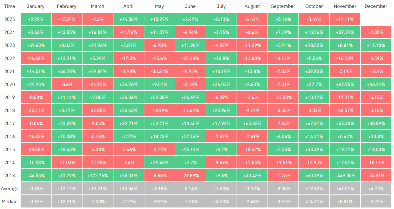 [편집자 주] 비트코인은 장기적으로 가장 높은 수익률을 기록한 자산이지만 단기 흐름에서는 강한 변동성과 계절적 패턴을 반복한다. 비트코인의 주간·월간·분기·연간 수익률을 정리해 상승·하락 빈도, 평균 수익률, 중앙값 등의 지표를 기준으로 흐름의 상대적 위치를 확인해본다.