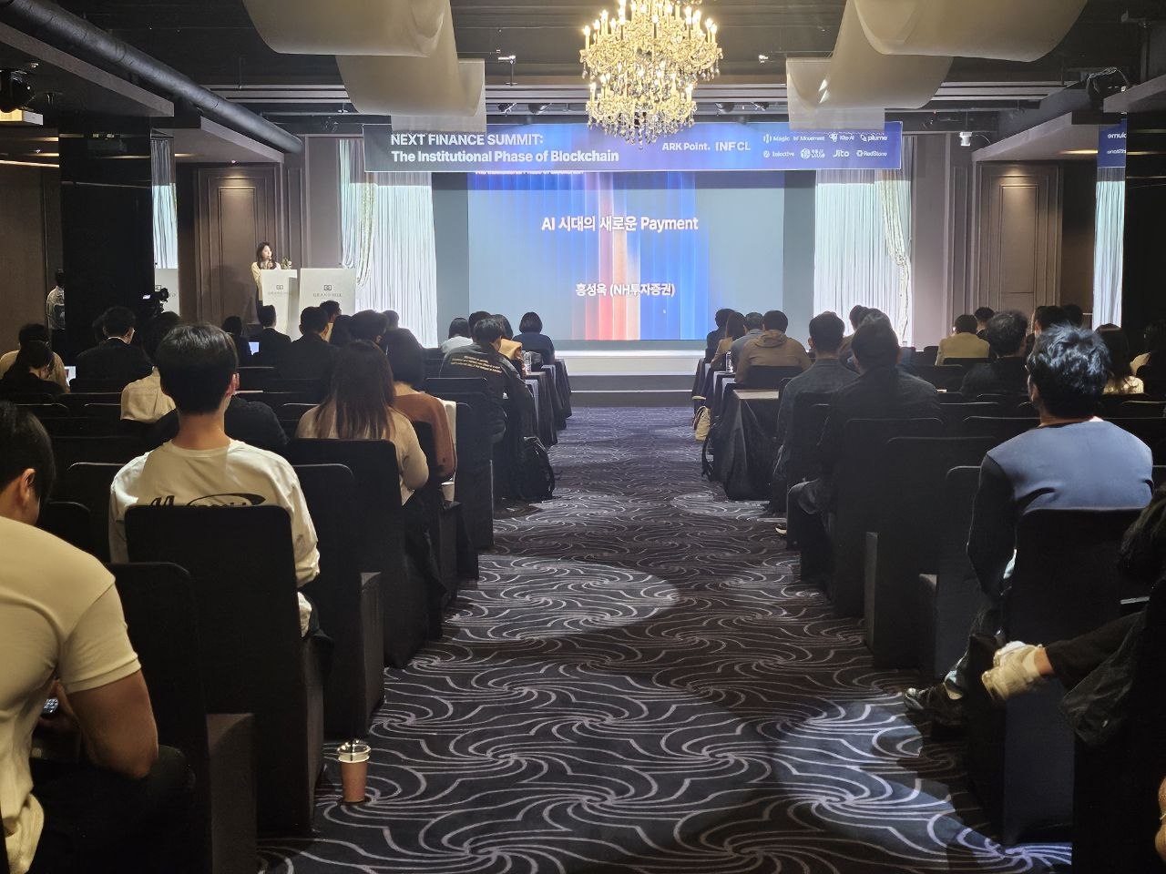 오후 AI & Payment 세션에서는 홍성욱 NH투자증권 리서치본부 디지털자산 책임연구원이 'AI 시대의 새로운 Payment'를 주제로 기조 발표를 시작한다. 이어 Kite AI의 Sonia Zhang이 최초의 AI 결제 블록체인을, Magic Labs의 Sean Li가 기관 대상 결제 서비스의 의미를 짚는다. 패널 토론에서는 우리은행·류존·헥토파이낸셜·코인원·법무법인 한영 관계자들이 원화 스테이블코인이 K-금융에 미칠 임팩트를 집중 논의한다.