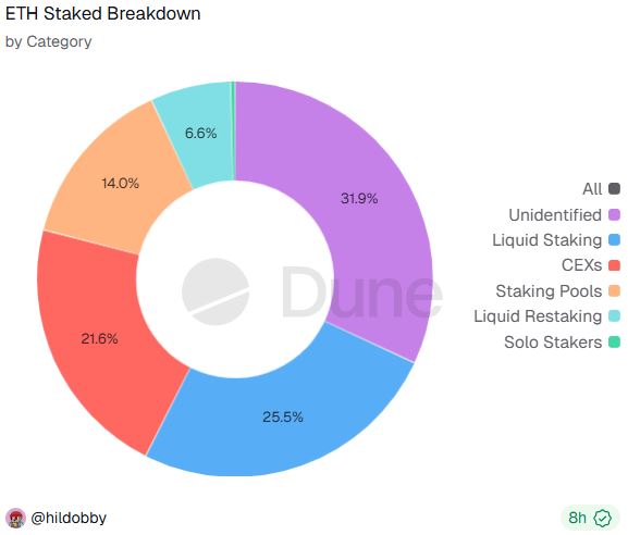 단일 스테이커 순위를 보면 ▲리도가 904만2336 ETH를 예치하며 약 22.9%의 최대 점유율을 유지하고 있다.