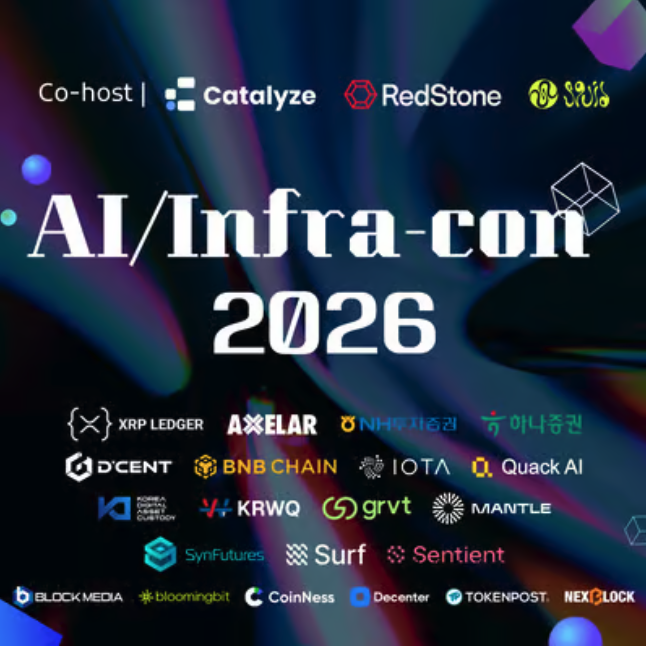AI/InfraCon은 AI와 Web3 인프라가 실제 프로덕션 환경에서 어떻게 연결되고 활용되는지를 조명하는 BUIDL Week의 메인 이벤트입니다. Perp DEX, RWA, Stablecoins, AI Agents 등 핵심 주제를 중심으로 업계 전문가들의 인사이트를 공유합니다. 키노트, 패널 세션, 글로벌 빌더 및 투자자들과의 네트워킹까지 한 자리에서 경험할 수 있습니다. 📍 드림플러스 강남 | 🗓️ 2026년 4월 15일(수) 18:00–22:00 |