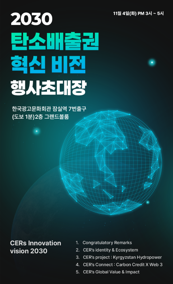 이번 행사는 탄소배출권 시장의 혁신과 Web3 기술이 만드는 글로벌 가치 확산을 주제로, 실제 프로젝트와 기술이 결합한 새로운 탄소 생태계의 방향을 제시합니다.