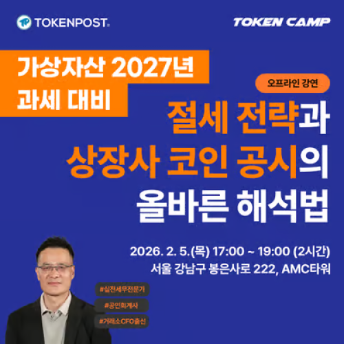 💡 대망의 첫 번째 캠프! 가상자산 세무·회계 전문가 윤유찬 대표 (토큰포스트 전문위원)와 함께 2027년 과세 대비 실전 전략을 나눕니다.