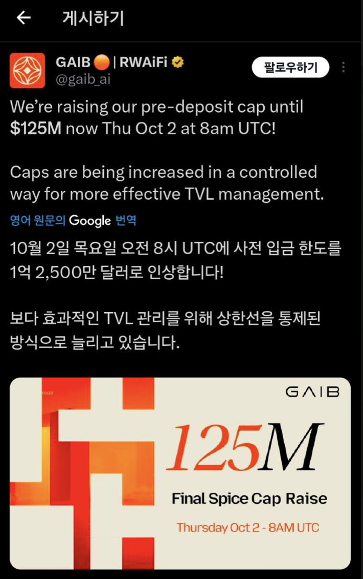 GPU 컴퓨팅 클라우드 RWAFI 프로젝트 GAIB 추가 예치캡 열렸습니다