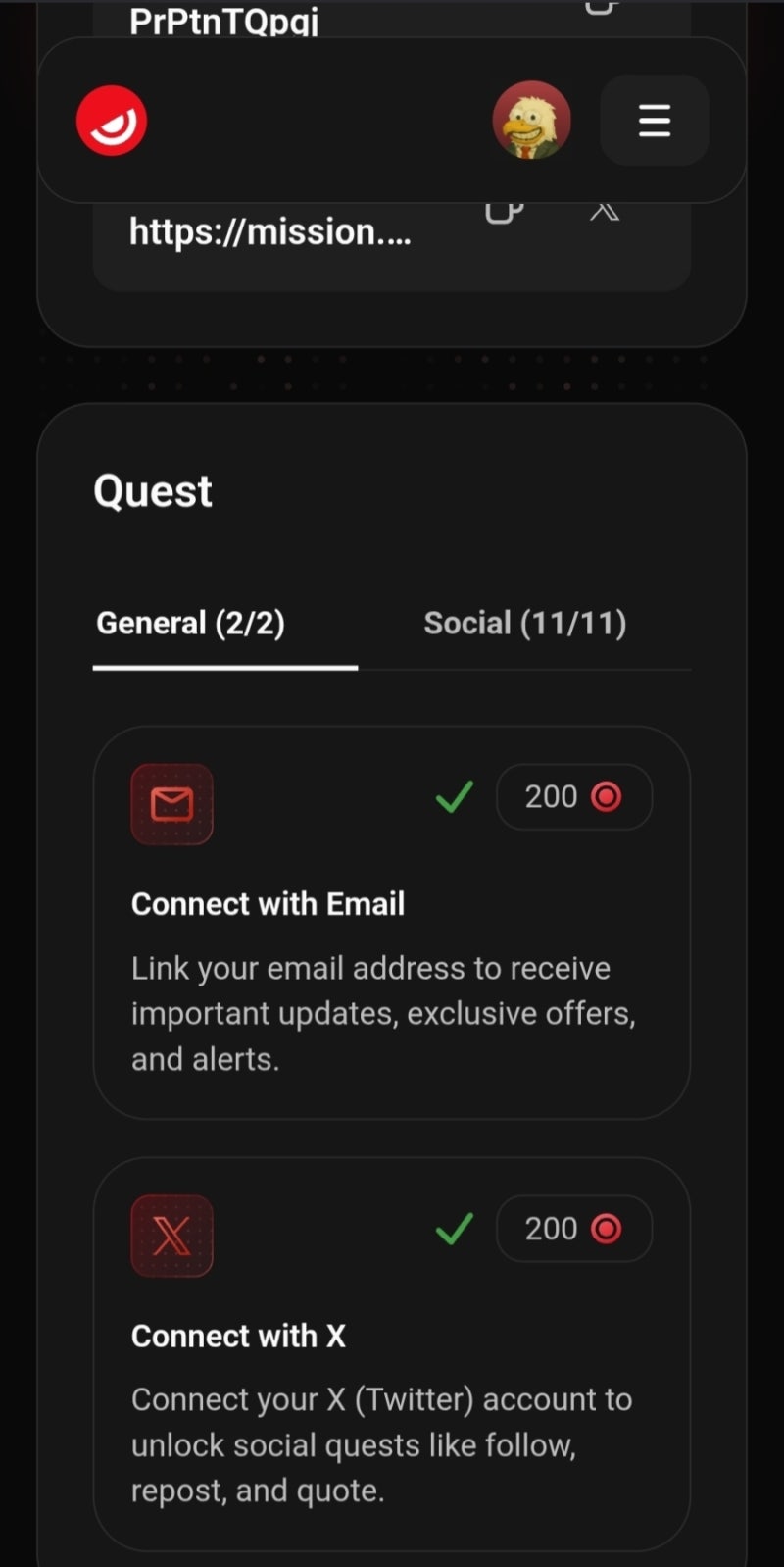 퀘스트 수행: 소셜 태스크, 온보딩 미션 등 완료.