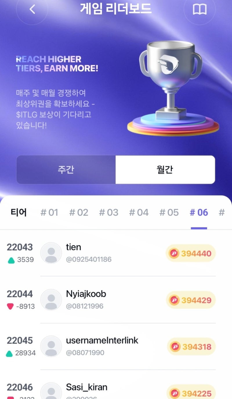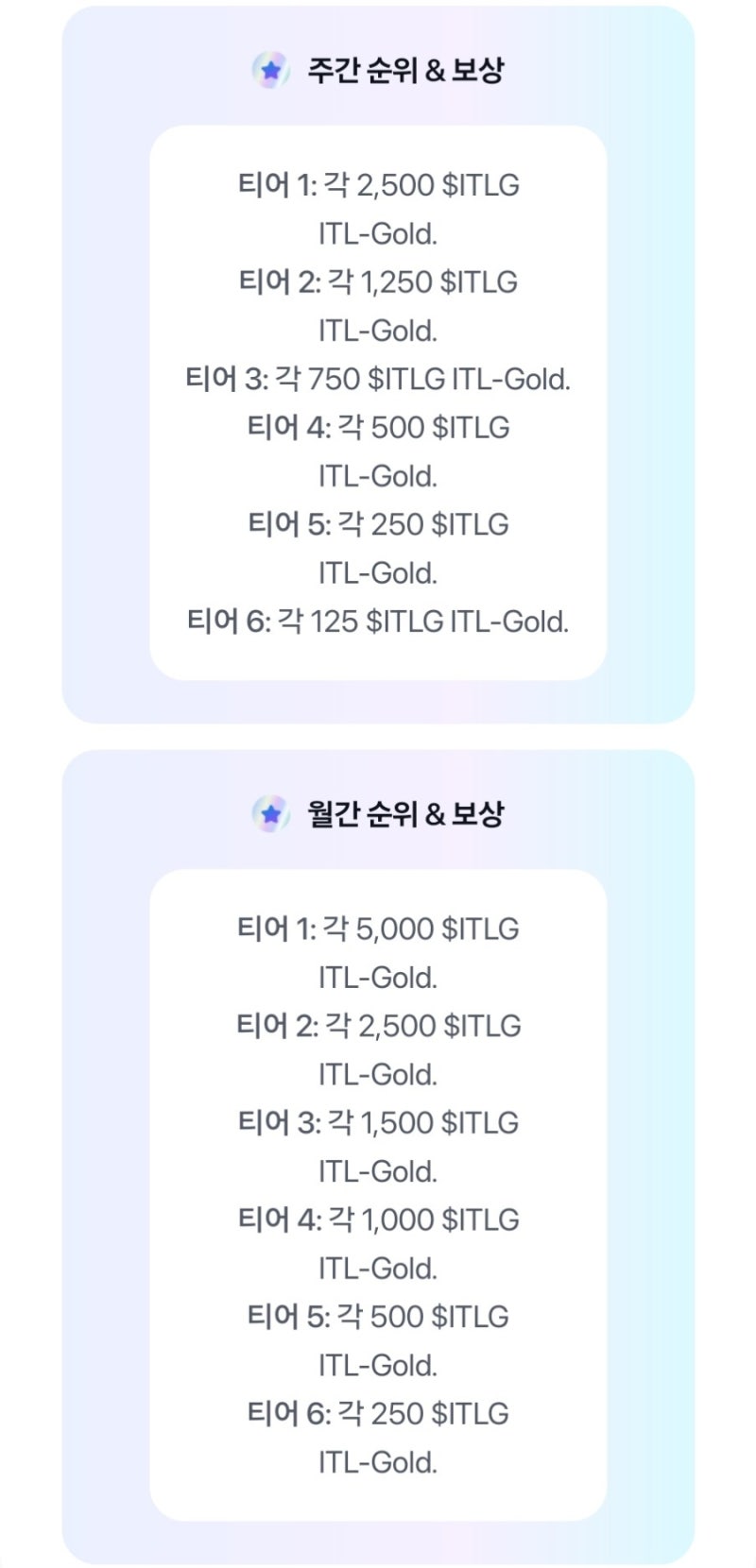 $ITLG 보상은 티어별로 받으일수 있는데