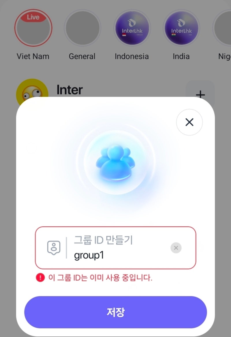 안전그룹 초대할사람의 아이디가 840110 이면 밑에 초대링크가 생성이됩니다.