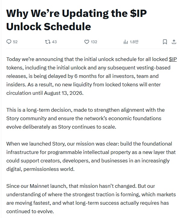 이번 업데이트는 기존에 락업 조건이 적용되던 팀, 투자자, 내부 관계자 물량에만 해당됩니다.