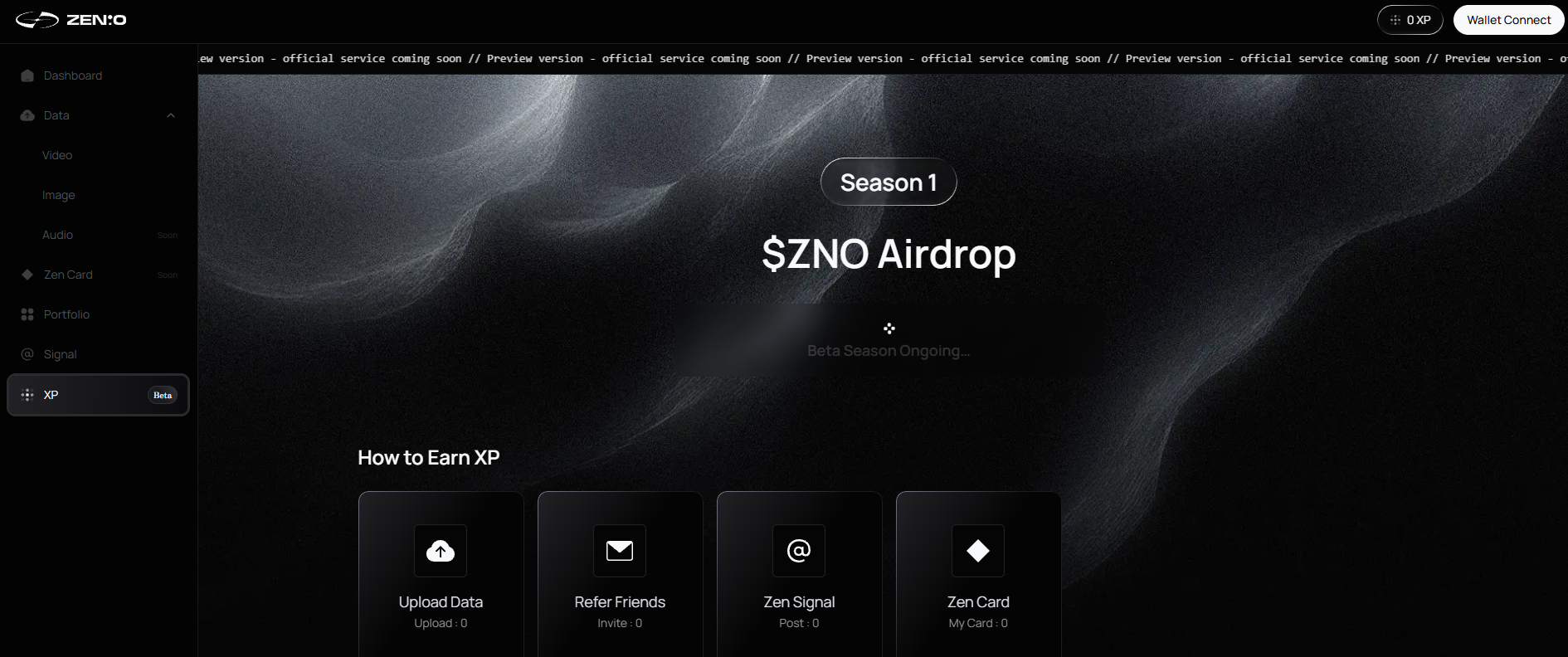 XP 시스템: 현재 베타 단계에서는 직접적인 토큰 대신 **XP(경험치)**를 쌓는 방식으로 기여도를 측정하며, 추후 이것이 $ZENO$ 토큰 에어드랍의 기준이 될 가능성이 매우 높습니다.