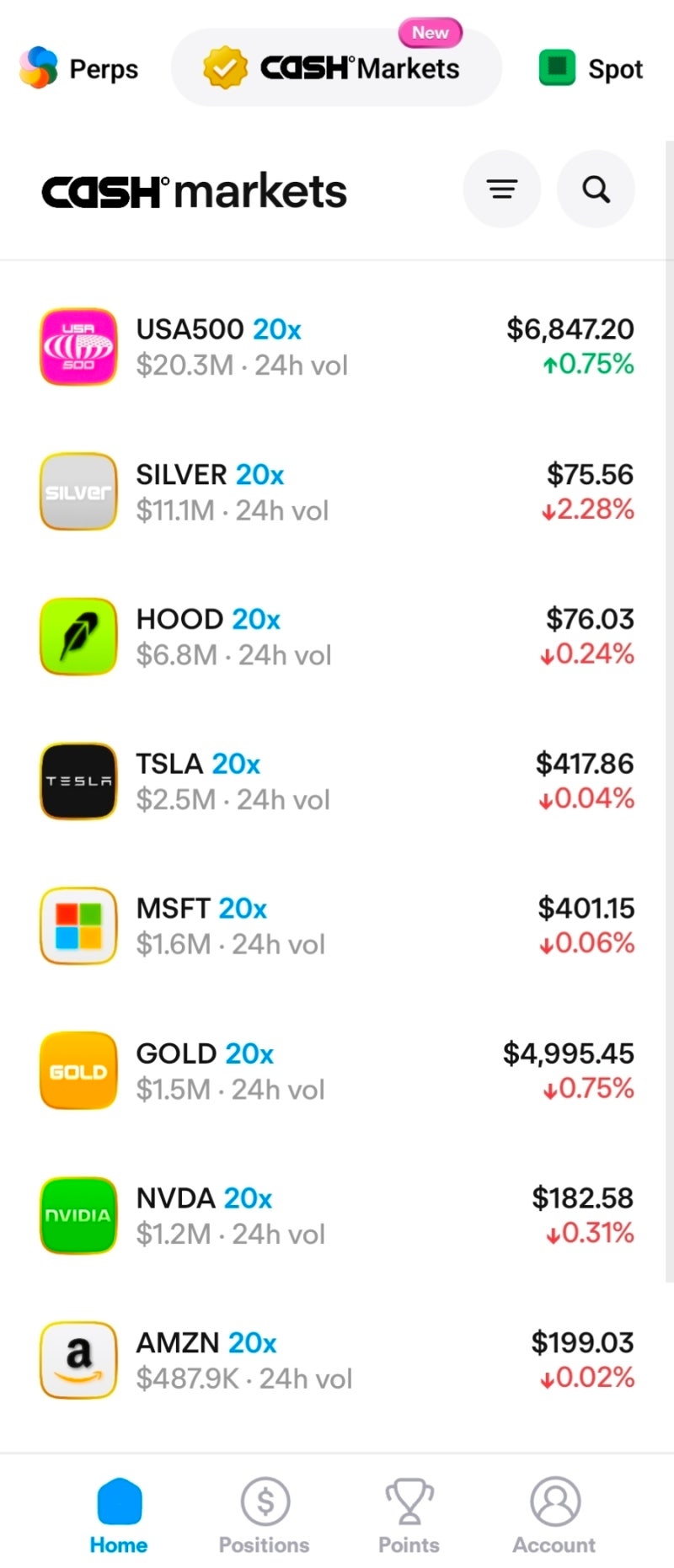 USDT0 (테더의 옴니체인 USDT) 담보로 RWA(테슬라, 엔비디아, S&P500 등) 영구선물 거래 가능