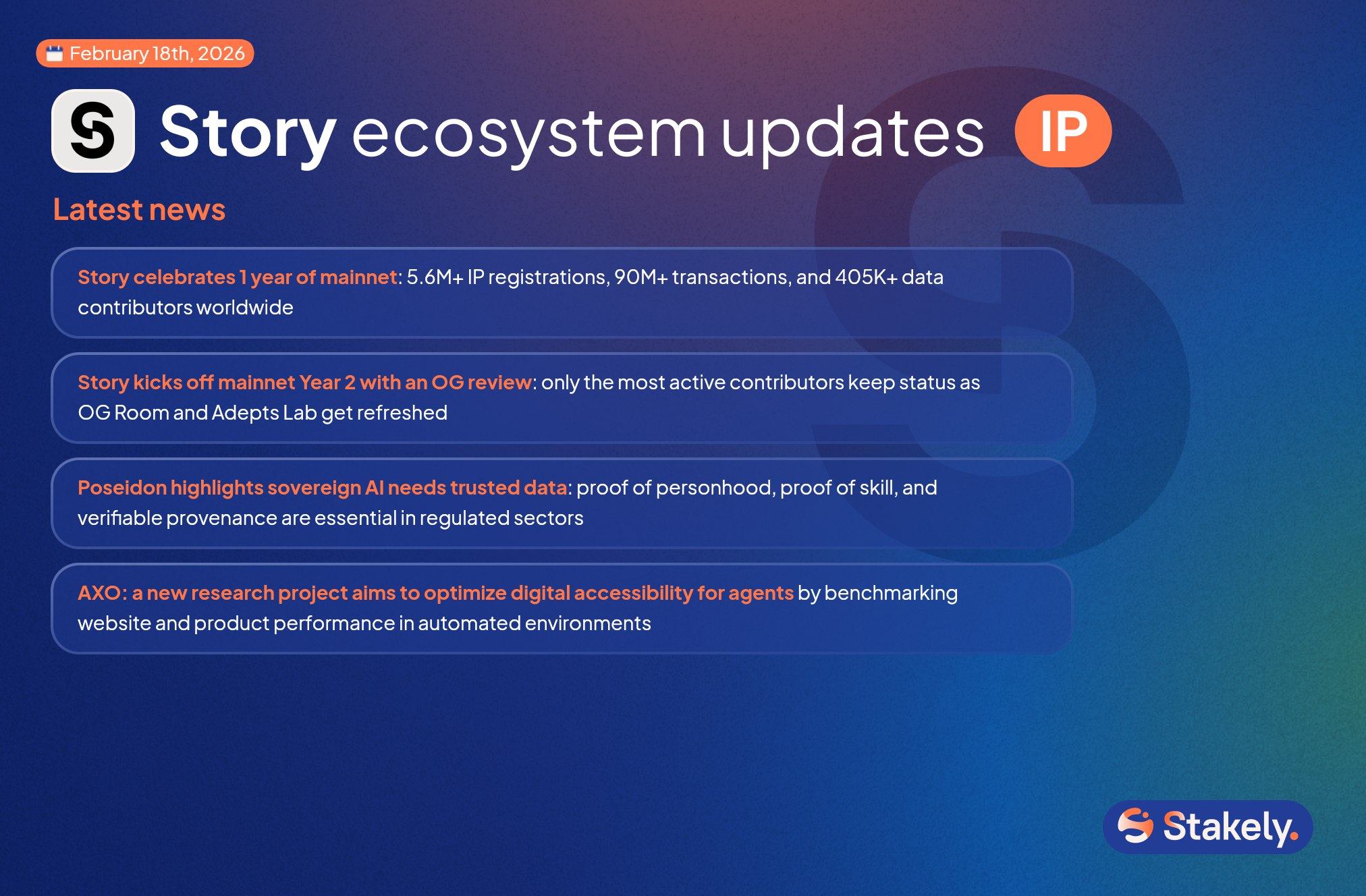 2026년 2월 18일 – Story 에코시스템 최신 뉴스메인넷 1주년 대기록 달성!