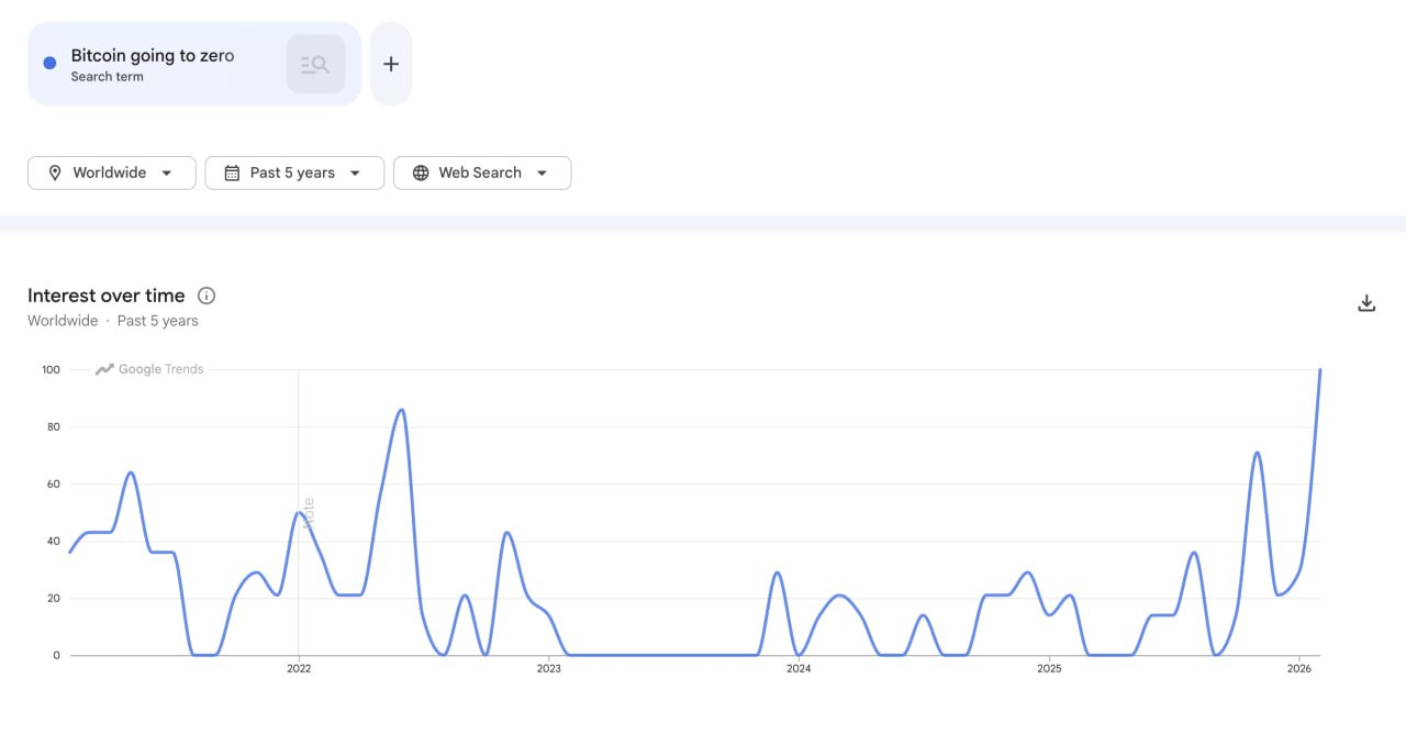 비트코인이 0원에 갈까요? 라는 검색어가 최근 5년간 최고치를 찍음