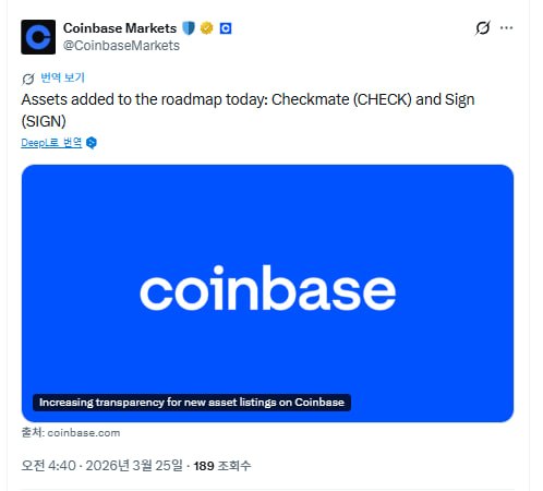 개인적으로 최근 코인베이스 로드맵에 추가되는 프로젝트들을 서치해보는 편인데 최근 코인베이스 로드맵 추가된 사인 코인이 클라리티 수혜를 볼 수 있지 않을까?라는 생각이 들어서 퇴근하고 공유하러 옴
