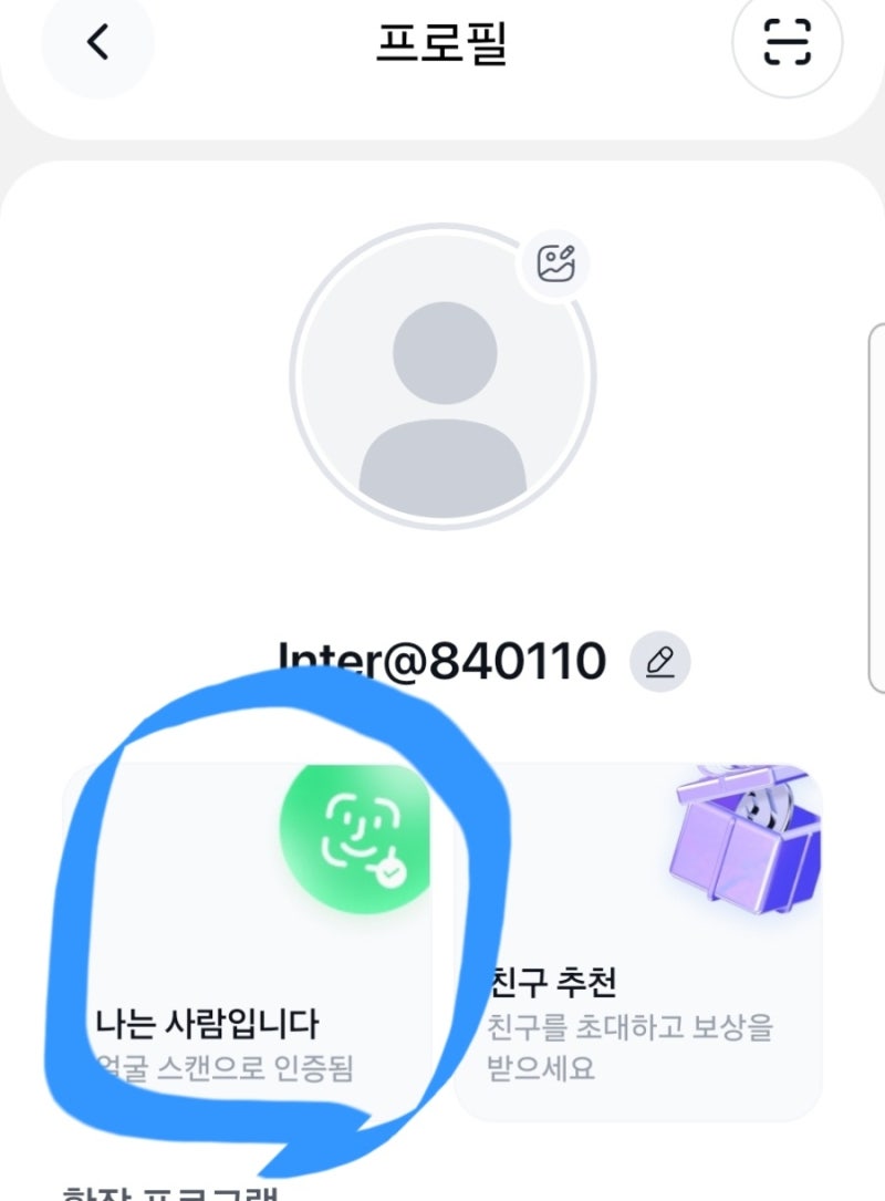 얼굴인증은 프로필 클릭후 나는사람입니다