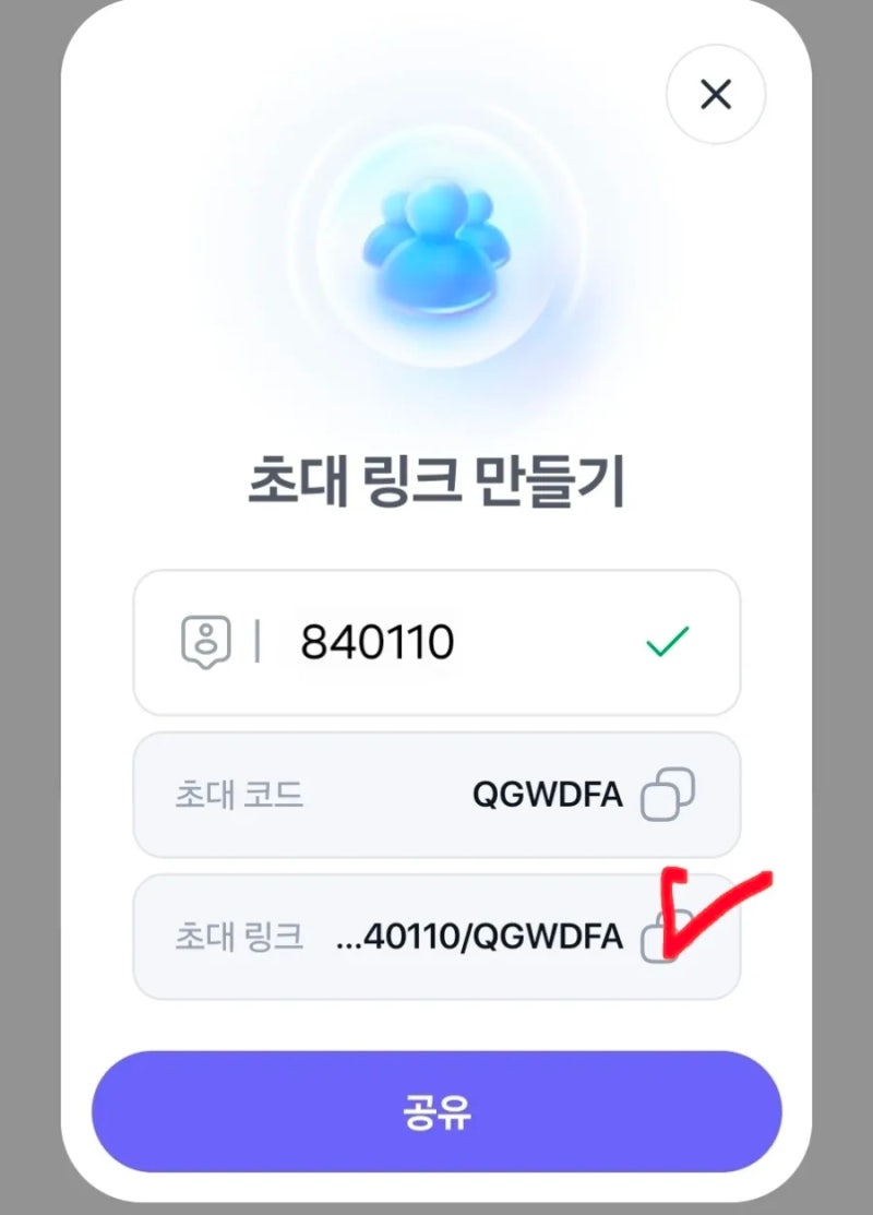상대방의 아이디(숫자)입력후 초대코드 생성을 하시면 됩니다