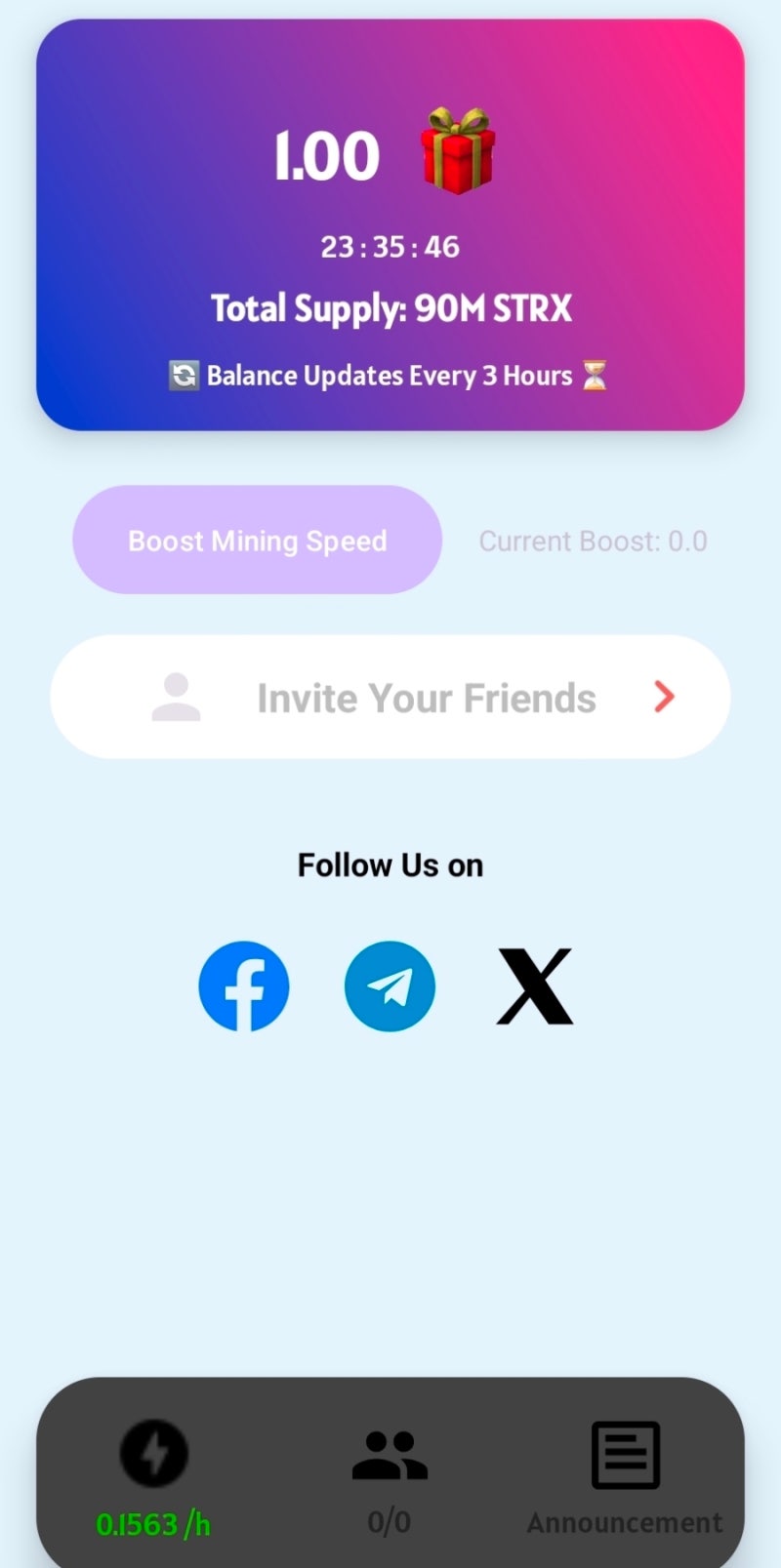 암호화폐를 채굴할 수 있는 모바일 중심의 크립토 프로젝트예요. Pi Network(파이 네트워크)와 매우 비슷한 콘셉트로, 고가 하드웨어 없이 누구나 쉽게 참여할 수 있도록 만든 "모바일 퍼스트 마이닝" 플랫폼입니다.