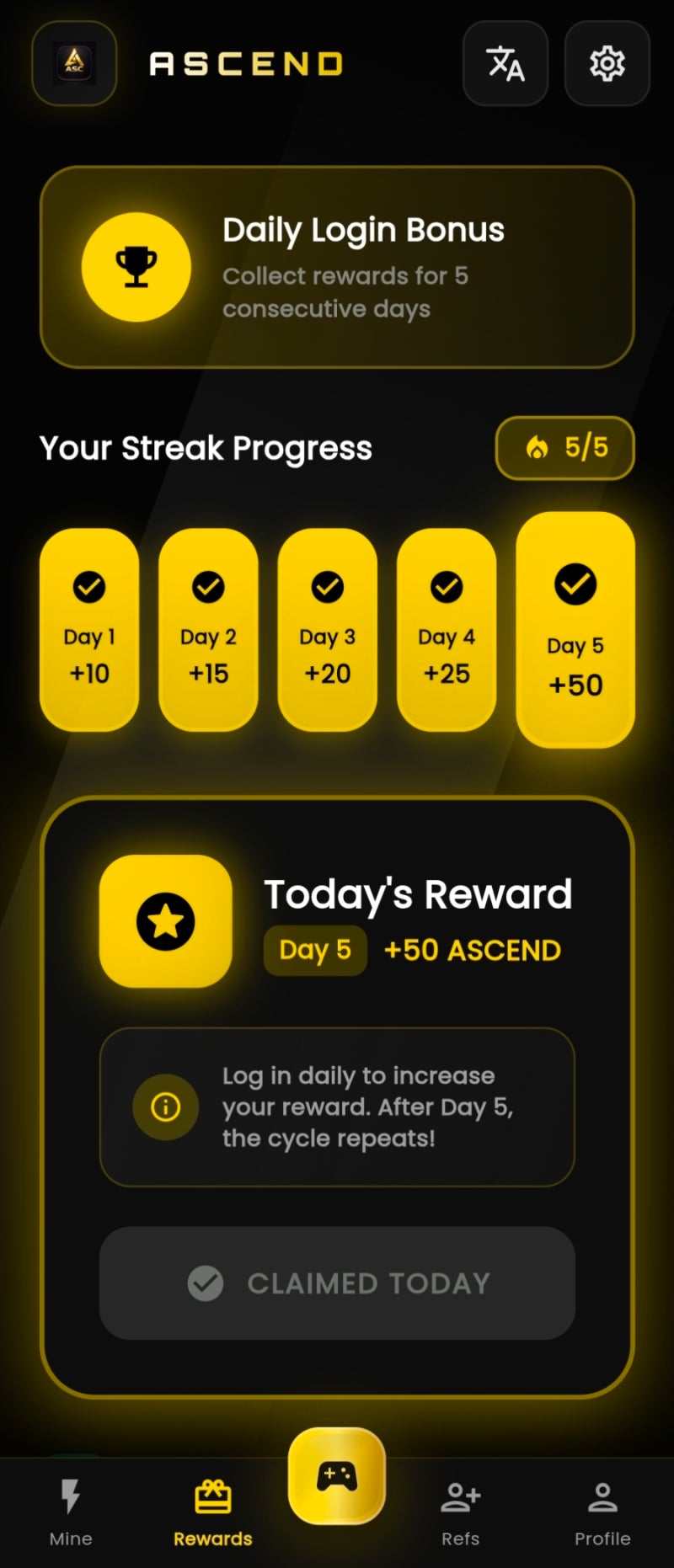 리퍼럴(추천) 시스템: 친구 초대 시 본인과 친구 모두 +0.5 ASC/min 추가 보상