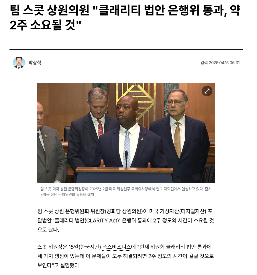 미국 클래러티 법안이 지금 통과 직전이라고 볼 수 있는데