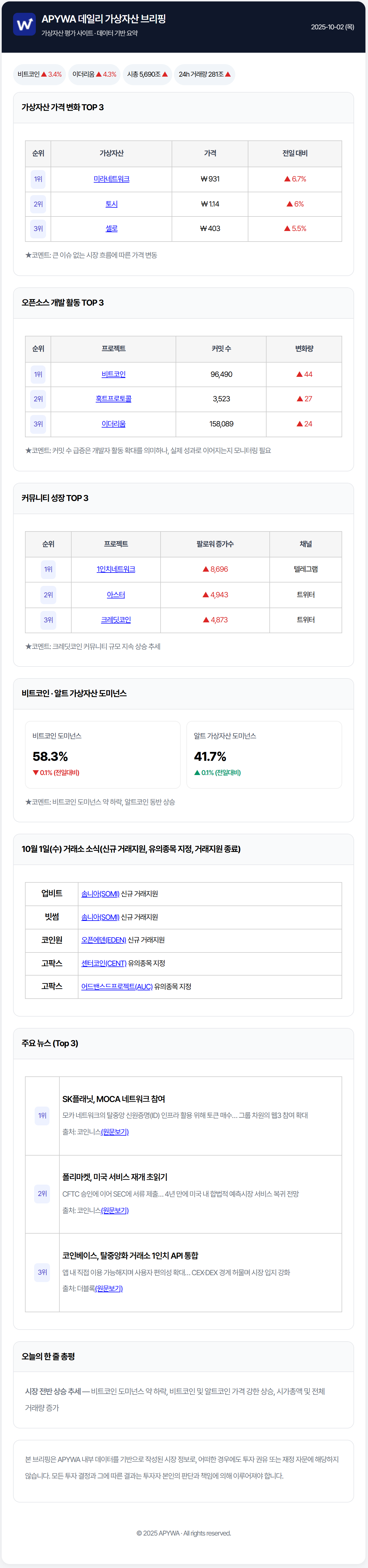 [10.02 브리핑]비트코인 및 알트코인 가격 강한 상승