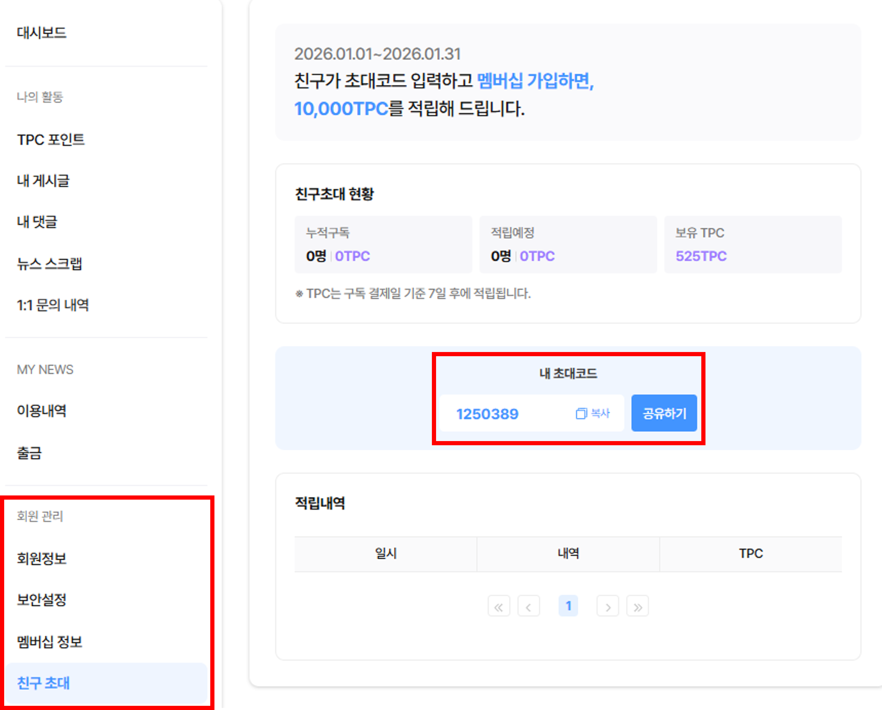 4. ์น๊ตฌ์ ๋ฉค๋ฒ์ญ ๊ฐ์ 7์ผ ํ, 10,000 TPC๊ฐ ์๋์ผ๋ก ์ง๊ธ๋๋ค