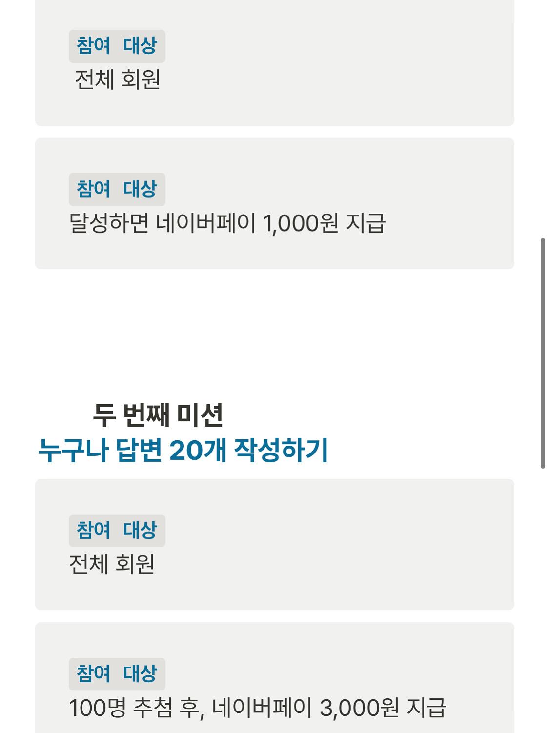 하루 1분 출석체크, 지식인 질문 답변으로도 리워드를 지급합니다.