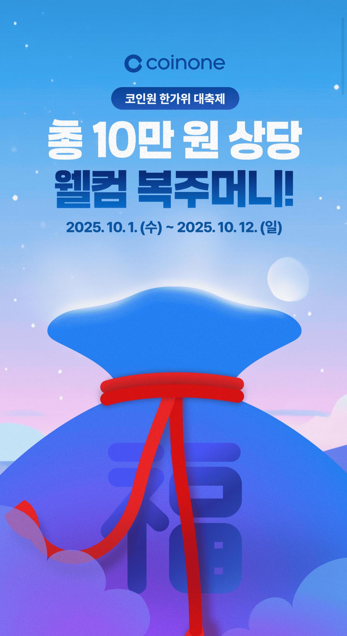 ์˜ฌํ•ด ํ•œ๊ฐ€์œ„๋ฅผ ๋งž์ดํ•ด ์ฝ”์ธ์›์—์„œ ์—ญ๋Œ€๊ธ‰ ์›ฐ์ปด ๋ณต์ฃผ๋จธ๋‹ˆ ์ด๋ฒคํŠธ๋ฅผ ์ง„ํ–‰ํ•ฉ๋‹ˆ๋‹ค! ์‹ ๊ทœ ํšŒ์›๋ถ„๋“ค์ด๋ผ๋ฉด ๊ผญ ๋†“์น˜์ง€ ๋ง์•„์•ผ ํ•  ํ˜œํƒ์ด์—์š”.