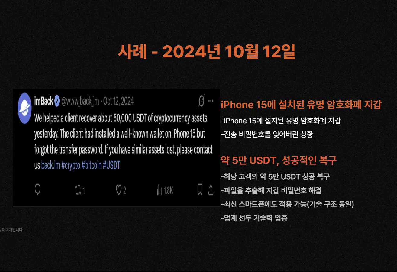 글로벌 선도 기업 imBack의 실제 암호자산 복구 사례에 대해 준비했습니다!