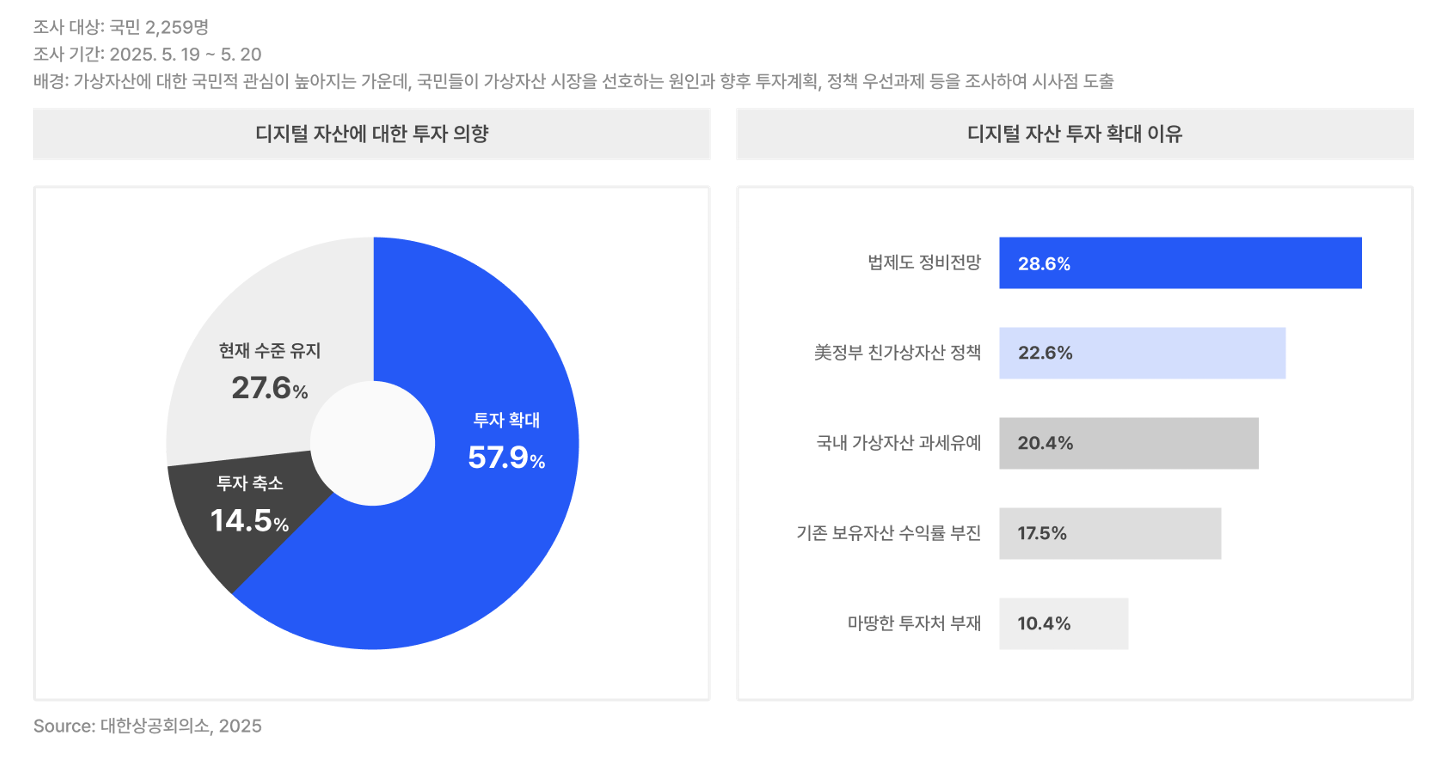 이어 “단순한 참여율을 넘어 응답자의 절반 이상이 향후 투자를 확대하겠다고 답했다는 조사 결과가 나왔다”며 “그 배경에는 제도 정비에 대한 신뢰가 자리하고 있었고 이는 한국 시장이 투기적 국면을 넘어 제도적 안정성을 토대로 성숙한 생태계로 발전하고 있음을 의미한다”고 강조했다.