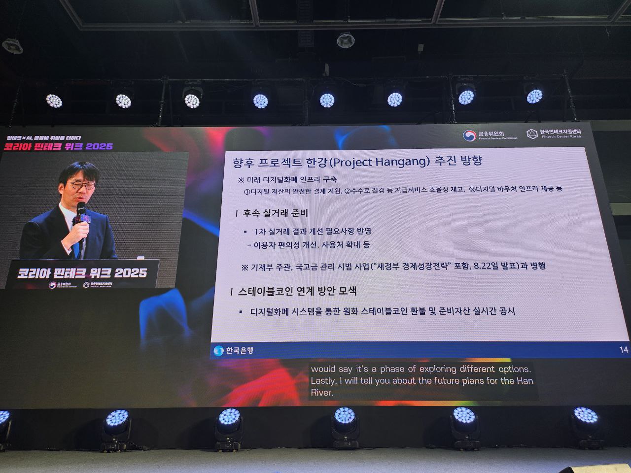 그는 올해 4~6월 7개 은행과 함께 약 8만 명이 참여한 실거래 실험 결과도 공개했다. 실험에서는 편의점·커피숍·온라인 쇼핑·배달앱 등에서 예금토큰 결제가 실제로 이뤄졌고, 서울·대구·부산 신라대와 협력한 디지털 바우처 프로그래밍 실증도 포함됐다.