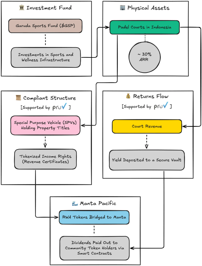 이번 프로젝트에서 $GSP는 인도네시아 전역에서 운영 중인 파델 코트 시설의 수익 배당 권리를 토큰화한 자산이다. 특히 자카르타 등 주요 지역에 위치한 일부 파델 코트는 이미 연간 약 30% 수준의 반복 매출(ARR)을 기록하며 안정적인 성과를 입증했다. 해당 자산들은 만타 퍼시픽(Manta Pacific) 네트워크로 브리지돼 온체인에서 손쉽게 접근할 수 있도록 설계된다.