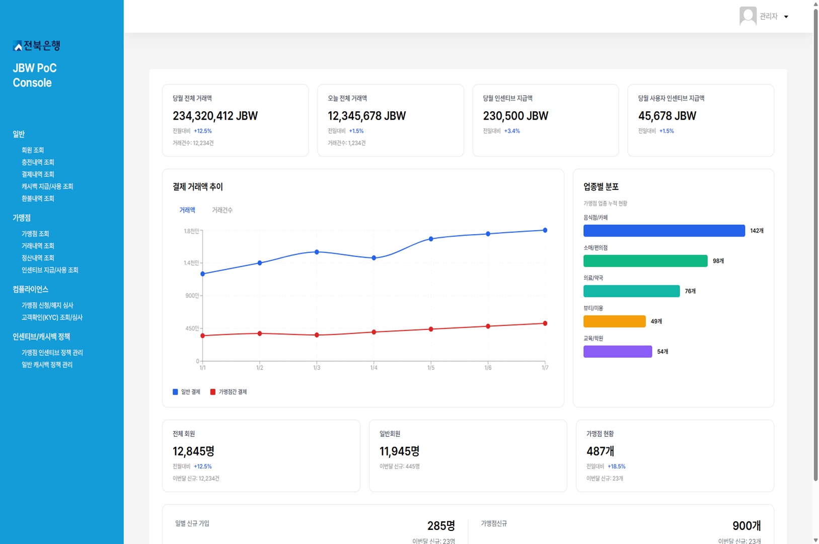 이번 PoC의 구조는 명확하다. 다날핀테크는 JB전북은행에 최적화된 이음 플랫폼과 테스트 앱을 구축·제공했고, 은행 측은 가맹점과 실사용자 관점에서 다양한 결제 시나리오를 반복 테스트했다. 이를 통해 사용자가 앱에 보유한 원화 스테이블코인으로 가맹점에서 결제하고, 정산까지 이어지는 엔드-투-엔드(End-to-End) 프로세스를 실거래와 유사한 조건에서 검증했다.