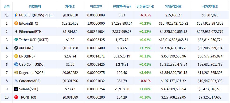 사진 = 암호화폐 시세 / 토큰포스트마켓