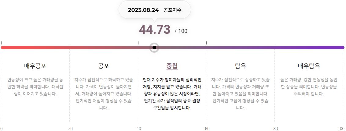 UBCI가 제공하는 가상자산 공포-탐욕 지수는 24일 기준 44.73을 기록하며 '중립' 단계를 유지하고 있다.
