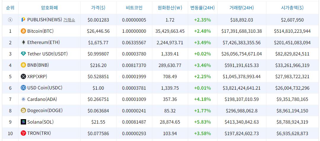[시세브리핑] 가상자산 시장 상승세...비트코인 2만6440 달러