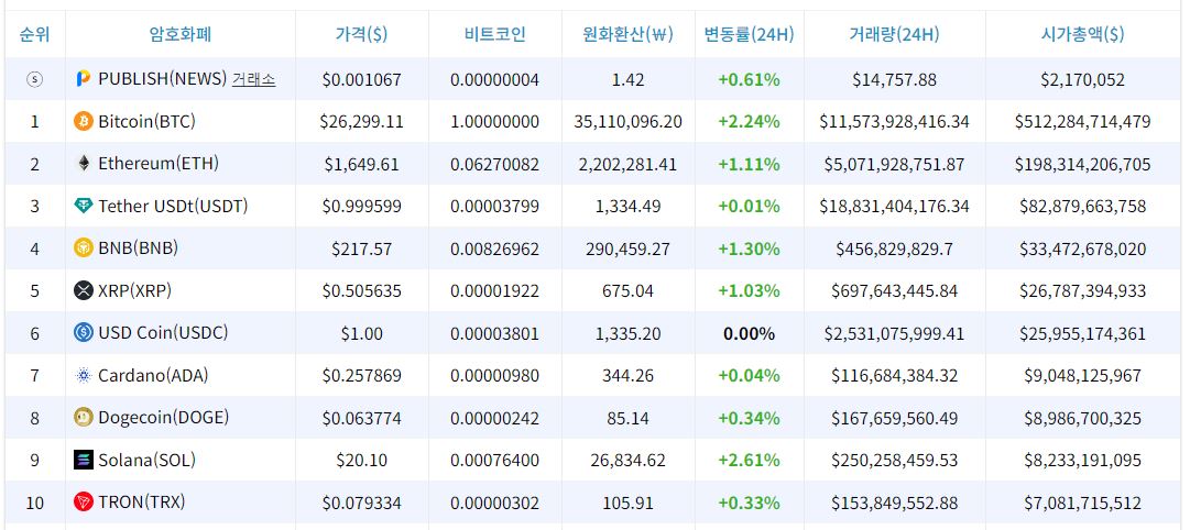 [오후 시세브리핑] 가상자산 시장, 얕은 상승세 이어가...비트코인 2만6300달러