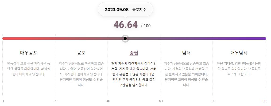 UBCI가 제공하는 가상자산 공포-탐욕 지수는 8일 기준 46.64를 기록하며 '중립' 단계를 유지하고 있다.